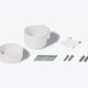 內容物:上層,底層,接頭底座,專用銷釘(10個),3mmx20mm的自攻螺釘(2個),錨栓(2個)