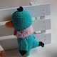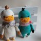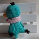 - 布棉花100%獨家的毛線娃娃。 很憨厚可愛的湖水綠憨厚鈎織扁嘴小鴨 圍著暖暖的圍巾
