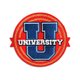 - 紅色底布上,設計一個 立體刺繡的大寫字母 U,中間排有「UNIVERSITY」字樣,字母周圍以金蔥刺繡線條盤繞成形,呈現精緻華麗的校園徽章風格。細節豐富,立體感強烈,適合裝飾衣物、帽子、包包或其他布料,展現學院風格與時尚感。