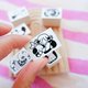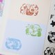 わんちゃんと女の子が一緒に寝ている癒しの絵柄のはんこです。
