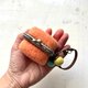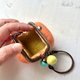 手のひらサイズの球体の羊毛フエルトがま口で、バックの外付けができるタイプです。