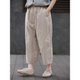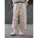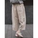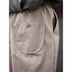 小蘿卜褲,利落的,乾脆的,對梨形身材格外友好。松緊腰頭內抽繩,褲腳微收,側邊拉直,褲子外延是順暢的線條,視覺上會很柔和。兩側有袋,後片也有一個,袋口用橘色扣眼鎖出一點斑斕,結合奶茶的小扣,把拙朴氣渲染一丟丟。