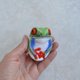 可愛的針氈青蛙胸針採用乾氈技術由純羊毛製成。