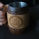 - Description : Material - linden wood Inset stainless steel inside. The amount of liquid 16 ounces (0.4-0.45 litres ) We would like to do more for you! Therefore, we offer you: - quality product - unique design - fast delivery - customer service