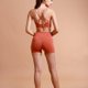 此款為內衣排扣可調式長版運動內衣,背部放射狀交叉,前胸小挖洞增添小性感,屬寬帶運動內衣但肩上亦有小挖空使整體不單調。