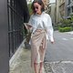 利用纏繞創造裙子的層次感 穿上後,隨著走動會有不同變化 順應布性和纏繞的設計 時而優雅時而展現若隱若現的性感