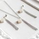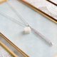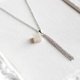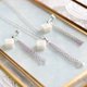 光沢のあるホワイトのキューブとシルバーのフリンジが耳元で揺れる様子が可憐なペンダント。