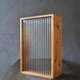 日本産ひのきの木枠に4ミリ厚のストライプ柄のレトロガラスを挟み込みました。
