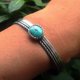 以天然綠松石(俗稱土耳其石)為主石,搭配925純銀打造的手工手環,
