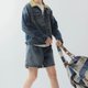 - 【巴恩風】美式復古 撞色領牛仔外套
