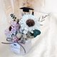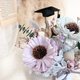 含盆器、花材和畢業帽,最寬約 16 cm 最高約 15 cm