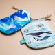 採用多種海洋元素製作多款花色的束口袋,水母星空增添了藍色漸層流蘇呼應水母觸手的部分,粉色人魚泡泡也多加一圈粉膚色絨球作為泡泡的點綴,內裡也搭配表布色系做不同的花色的縫製。