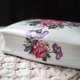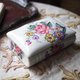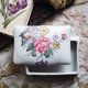 陶瓷盒子是書本形狀的, 盒身飾有精美的手繪花卉圖案,色彩柔和細膩,