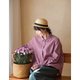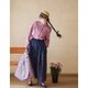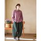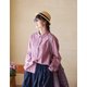 丹特粉進口日曬乾布料亞麻棉翻領小襯衫 - 女襯衫 - 棉.麻