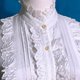 衣況/ 無內裏.領子與前襟有荷葉邊刺繡縷空設計.布料有細微光澤.有幾處小壓紋.是這種布料的屬性會有的情形.可傳圖確認