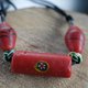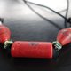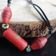1顆管狀老琉璃珠搭配2顆橢圓型老琉璃珠組成之項鏈,牛血红琉璃,很漂亮的红色。整體器形古樸,光氣内歛很耐看,包漿油潤、皮殼厚實,絕對保真保老,非常珍貴,值得珍藏擁有!