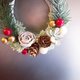 仿真黏土多肉植物與毬果、人造花材結合的花圈