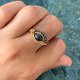 💫這款手工金屬繞線戒指,以細膩金線環繞一顆天然紅藍寶石(Ruby and Sapphire)珠子為核心,設計成經典的「惡魔之眼」結構,周圍點綴小黑珠如睫毛般排列,捕捉石頭藍紅光澤的閃爍脈動,宛如一雙融合激情與智慧的眼睛,監視並融合正負能量,讓佩戴者感受到宇宙的隱秘和諧。