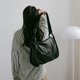 supportingrole廓形方正百搭輕量真皮肩斜背包 黑