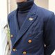 ネイビーやブラックなど、暗い色のジャケットによく合います。
