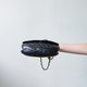 - 尺寸:L21cm x W4.5cm x H15cm 內裏泛黃經過歲月痕跡有一些毛球 已清洗過 雞眼扣內側生鏽,背帶鐵鍊沒有生鏽