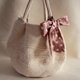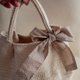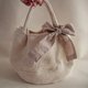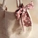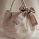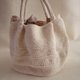 布棉花毛線手作編織包,白色棉麻編織而成,裝飾以點點蝴蝶結綁帶,