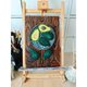 原創丙烯手工藝術作品-《金屬盤上的酪梨》。