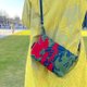 バッグの半分にレッド、半分にグリーン系の生地が使われているミニショルダーです。レッド系もグリーン系も両方楽しめる欲張りバッグ!差し色にも効果的で見ているだけで元気が湧いてきます。明るいカラーリングはギフトにもおすすめ!