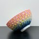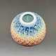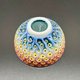 此作品是透過四到五層不同的釉藥層層堆疊,藉由每層施釉厚薄拿捏,並窯燒至1260度,歷經20小時的烈火淬煉,讓它在窯裡收縮流動,產生出孔雀羽毛的斑紋與流動感。