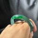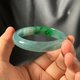 這隻玉鐲透光呈現藍色調,質地很細膩,一面有著像噴色機尾端的霧化雲,一面帶著非常頂級的翡翠綠,不論是投資或是自用,這隻都是非常優秀的選擇。