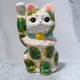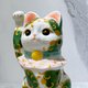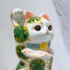 日本清水燒招財貓 色繪 白地 唐草