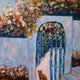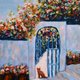 一幅田園詩般的夏日景象,將為您帶來地中海的氛圍:一隻貓咪坐在陽光普照的希臘庭院中,坐落在潔白的拱門旁,下方是美麗的九重葛。