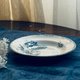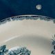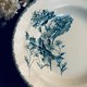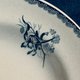 這只法國HB & Cie.製造的普羅旺斯系列古董深盤,完美呈現了十九世紀末至二十世紀初的法國優雅,它採用堅固耐用的鐵石Terre de Fer材質,用於盛裝濃湯燉菜等醬汁豐富的主食,也十分適合做為中型主菜盤,盤面以浪漫的藍色花卉轉印圖案搭配精緻蕾絲邊框,展現出典型的法式鄉村古典風格,其邊緣的藍色花紋呈現出手工轉印特有的透底鏤空效果,邊界微小的差異正是十九世紀工藝的時代印記,盤子可見古董獨有的冰紋,但整體無嗑傷、無沁色,狀況良好。