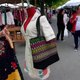 Shoulder bag, Thai woven fabric, artificial leather strap, zip fastening.