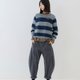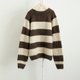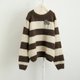 - / 毛線貼布長袖毛衣 / 寬條紋編織 營造視覺節奏與厚實質感 / 胸前毛線貼布 增添手工層次感 / 單穿即可成為造型重點 也能內搭襯衫展現層次與俐落