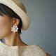 品名:手作-古董鈕扣改制-清純蕾絲小白花垂墜耳環一對