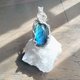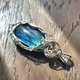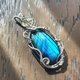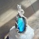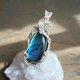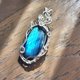 拉長石吊墜。線材為銀色藝術銅線。整體尺寸(長x寬)為55x24mm。