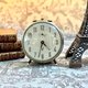 後方的中心小旋鈕用於調整時間,上方小旋鈕用於設定鬧鈴時間。背後兩個把手環是機芯與鬧鈴上鍊旋鈕,將其旋緊即可運作,可每天定時上鍊,頂部有鬧鈴停止按鈕。充滿老式機械的美感與儀式感。