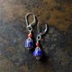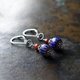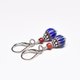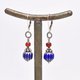 アンティークブルーシェブロンビーズと濃赤ホワイトハーツのピアス - 耳環/耳夾/耳骨夾 - 玻璃 藍色