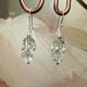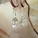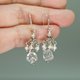 天然 小米珍珠 銀花蓋 白水晶墜 搖曳流蘇手工耳環