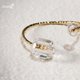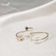 ✦人造鋯石✦經切割後展現水晶般光澤,與鍍14K金戒身相映成趣,簡約中帶有輕奢質感。雙鋯對稱存在,又不對稱造型的設計,讓視覺變化更豐富,開口戒圍可自由微調,輕盈貼合,適合日常配戴。