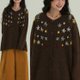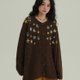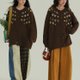 前胸、肩頭繡著粉紫黃小花,零散分佈如自然生長,為毛衣增添活潑細節。