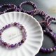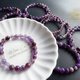 油潤透亮的紫色珠體,間或可見細緻雲霧與礦痕,每一條皆為獨一無二。