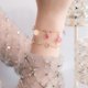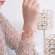 鍍玫瑰金銀線 | 奧地利水晶 | 奧地利水晶珍珠 | 紅紋石 | 太陽石(金草莓晶) | 手製樹脂黏土花 | UV膠強化保護層 | 鍍玫瑰金925純銀手鍊 | 鍍金手鍊