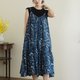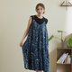 細肩帶低背設計洋裝_植染藍花 - 洋裝/連身裙 - 棉.麻 藍色