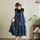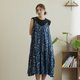 細肩帶低背設計洋裝_植染藍花