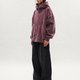 雙開拉鍊的配置則提供更靈活的穿著層次變化。前身以錯位交叉的剪接線構成視覺焦點,兩側加入活折裁片,並以打結車縫固定延伸至口袋位置,增強結構牢固度的同時,也形成另一種具層次感的口袋表現。