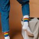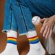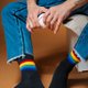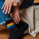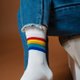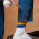 📣採用提花工藝(Jacquard)的襪子,紗織精細,成本較高。將襪子翻面後,在不同顏色的交界處會預留精綿,長度約1-1.5cm,以保證面料的完整性。緹花襪優點為,不易掉色、層次分明、不易起球、柔軟親膚、透氣性高。