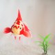 更紗琉金です。 口紅と赤い瞼が化粧をしたようです。 胴体の細かい模様も美しいです。 目元は青みがかった白を使ってリアルに表現しています。 サイズ 横16cm×高14cm