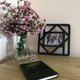 - Wooden 25 by 25 centimeters photo frame featuring a unique geometric design. This frame is horizontal and holds one 10x15 cm photo. The frame can be painted in different colors.